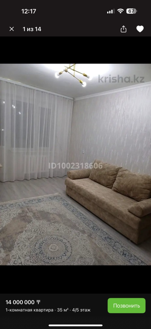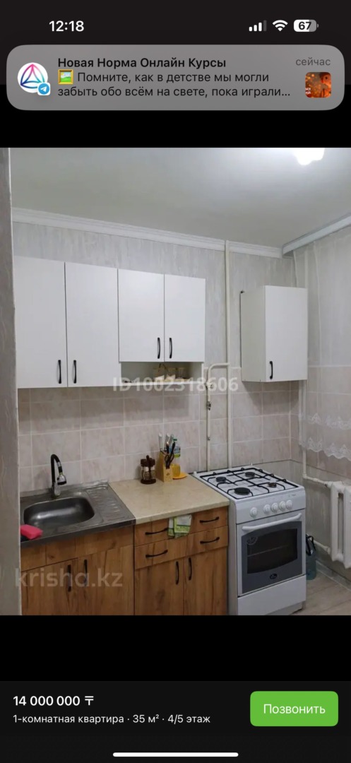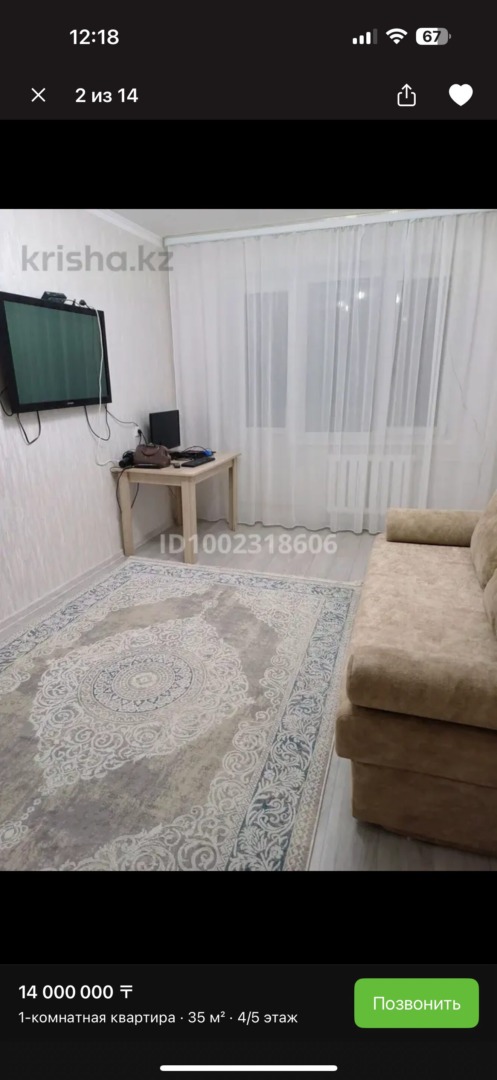 Площадь 35 кв.м Год постройки 1977 Этаж 4/5 Панельный дом Рядом школы, садики, торговые центры