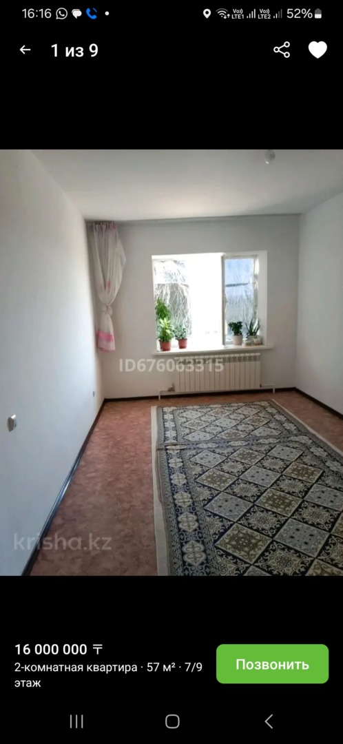 На продаже 2х комнатная квартира район Нур Сити