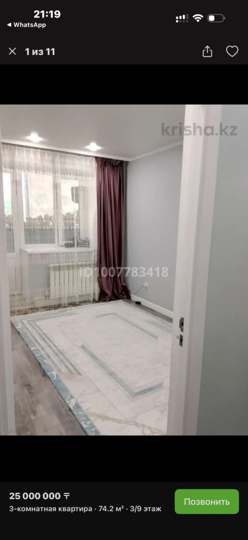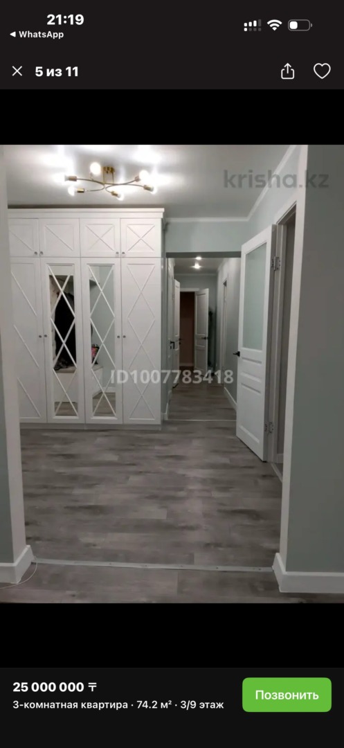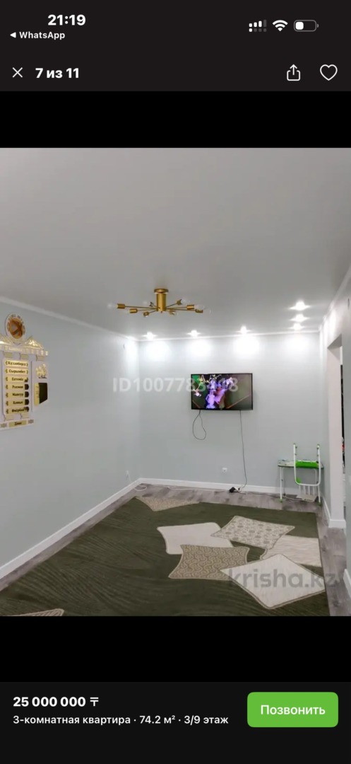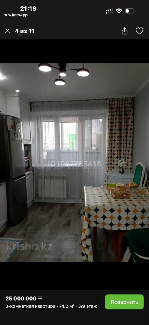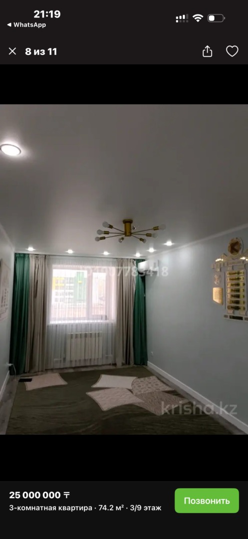 На продаже 3х комнатная квартира район Нур сити