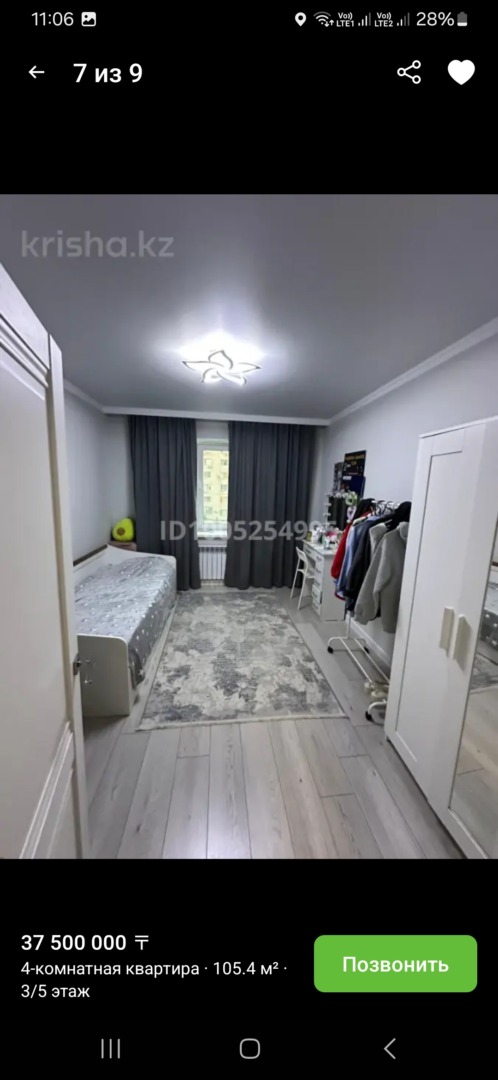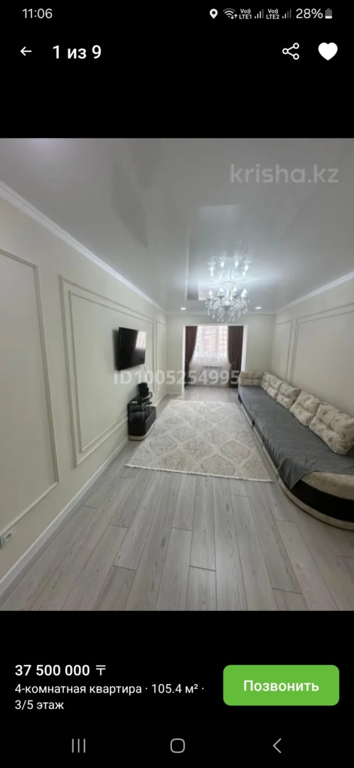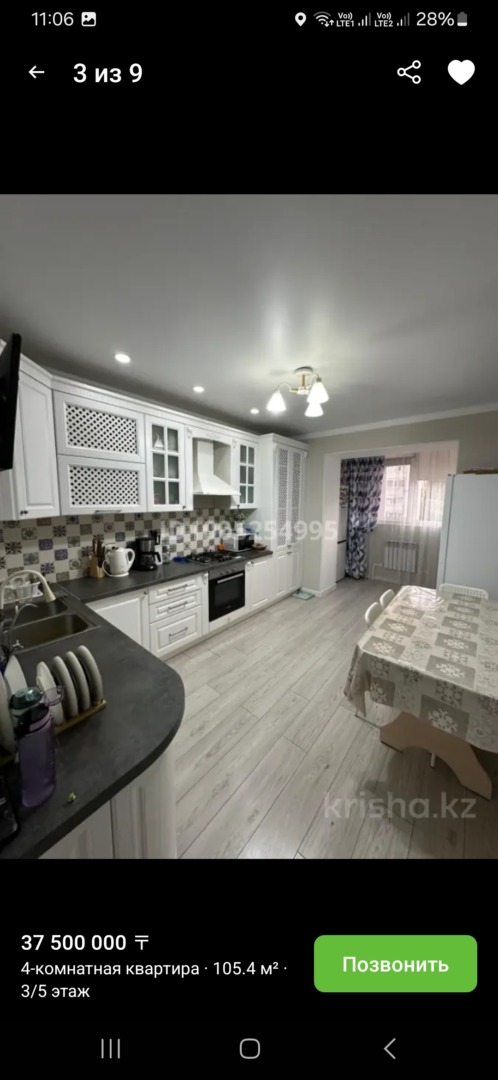 На продаже 4 комнатная квартира с ремонтом район Болашак